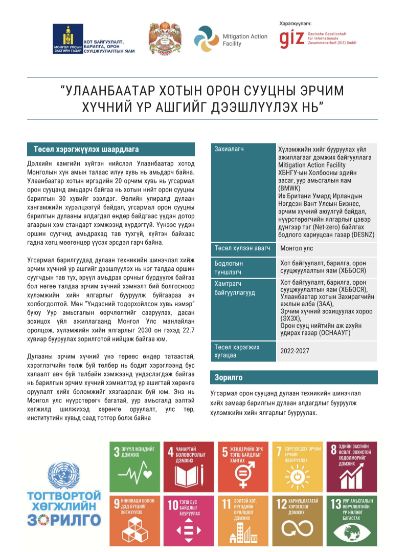 Германы Засгийн газрын даалгавраар GIZ нь ардчилал, зах зээлийн эдийн засагт шилжих үйл явцыг дэмжин ажиллаж ирсэн. Өнөөдөр Монгол Улсад шинэ сорилтууд тулгарч байна. Үүнд: байгалийн баялгаа тогтвортой ашиглах, биологийн олон янз байдлаа хамгаалах зэргээс гадна Монгол Улс дэлхийн хамгийн их нөөц баялагтай орны нэг бөгөөд эрчим хүчний нөөц, зэс, үнэт металл, газрын ховор элемент болон бусад чухал түүхий эдийн асар их нөөцтэй. Нэг талаас түүхий эдийн салбар бол эдийн засгийн хөдөлгүүр. Нөгөө талаар эдгээр нөөцөөс хэт их хамааралтай байх нь эрсдэл дагуулж болзошгүй тул эдийн засгийн өсөлтийг тэгш хүртээмжтэй байлгах нь чухал юм.